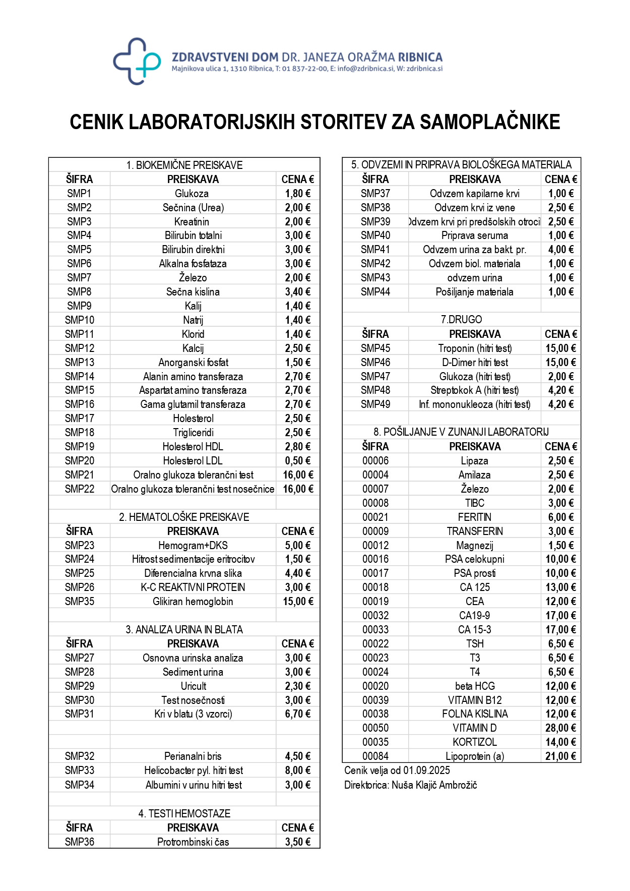 Cenik laboratorijskih storitev