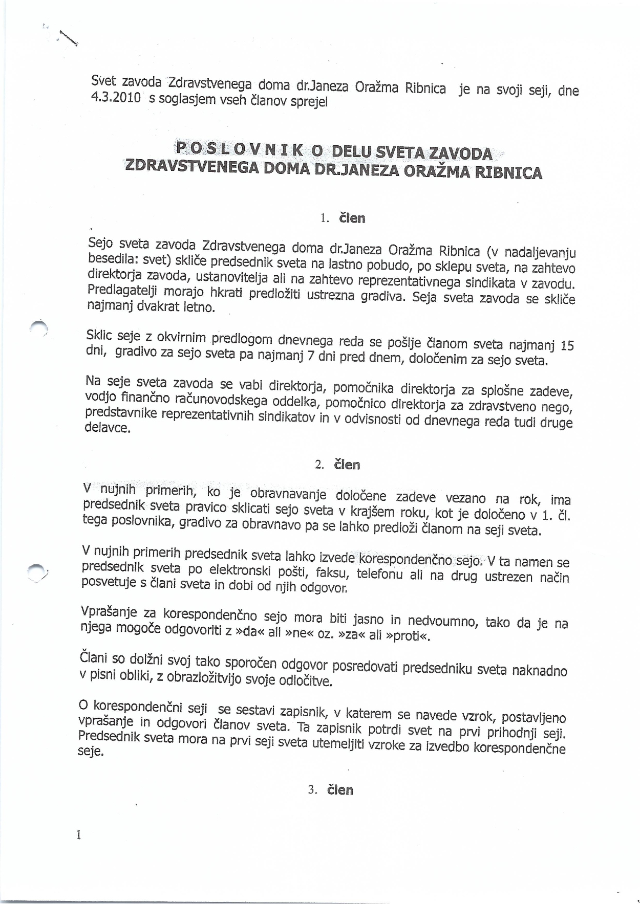 Predstavitev zavoda – Poslovnik o delu sveta zavoda